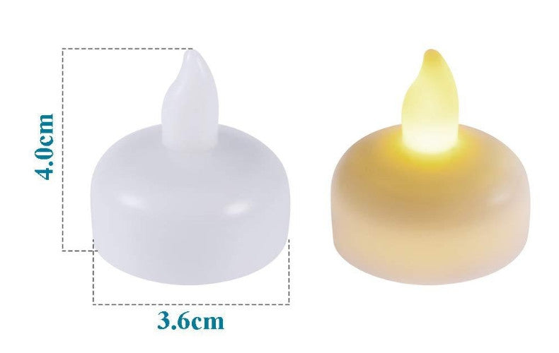 - FLOATS ON WATER : Water sensor Candles glow as soon as you drop them in water and radiates warm yellow light creating a magical ambiance in the atmosphere. Put these led candles in your vase or water bowl filled with water to create a warm and romantic ambiance.(Height-4cm) (Dia- 3.6cm).
